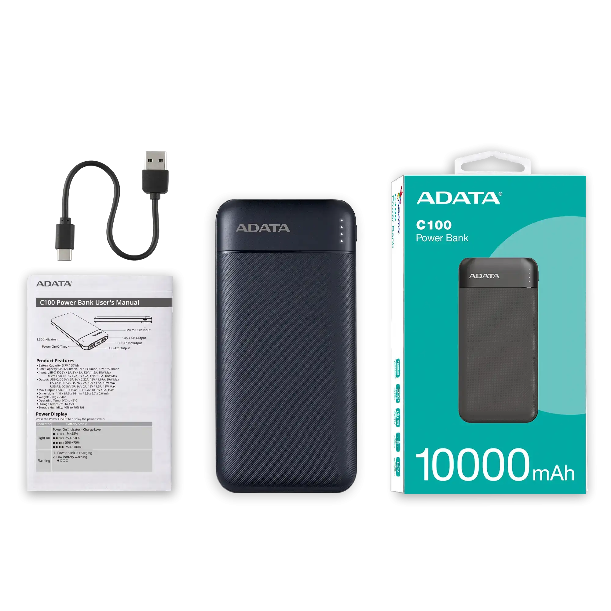 The ADATA C100 10000mAh Fast Charging Power Bank is an ultra-reliable portable charging solution for those who need quick power on the go. With a 10000mAh capacity, it provides enough juice to keep your smartphone, tablet, and other USB-powered devices charged throughout the day. Equipped with fast charging capabilities, the C100 ensures that your devices get charged in the shortest time possible.