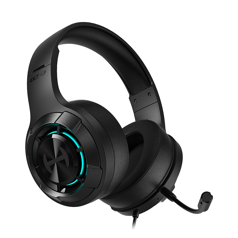 Edifier G30 II wired gaming headset features virtual 7.1 surround sound, 50mm drivers, RGB lighting, and noise-canceling microphone – optimized for immersive gameplay.