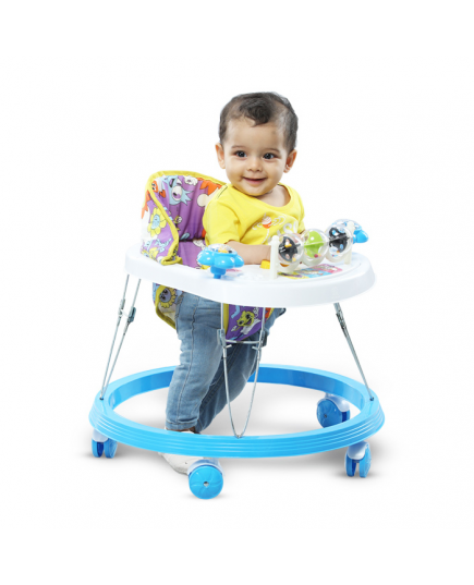 The Jim & Jolly Smile Baby Melody Walker - Cyan Blue & White is a safe, musical, and sturdy walker designed to support your baby’s first steps with fun melodies and engaging activities.