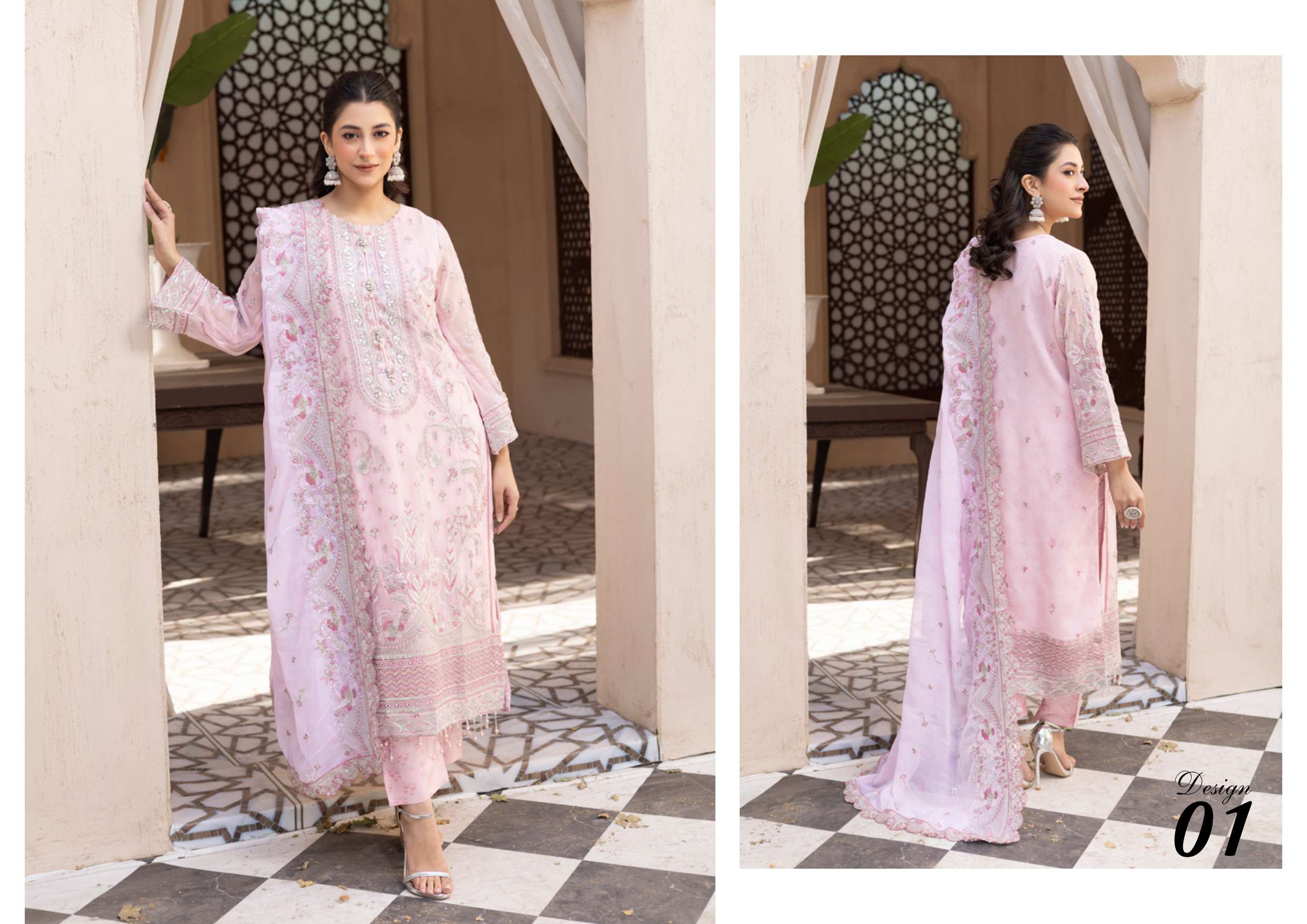 pakistani sadabahar organza 2 piece - baby Pink
