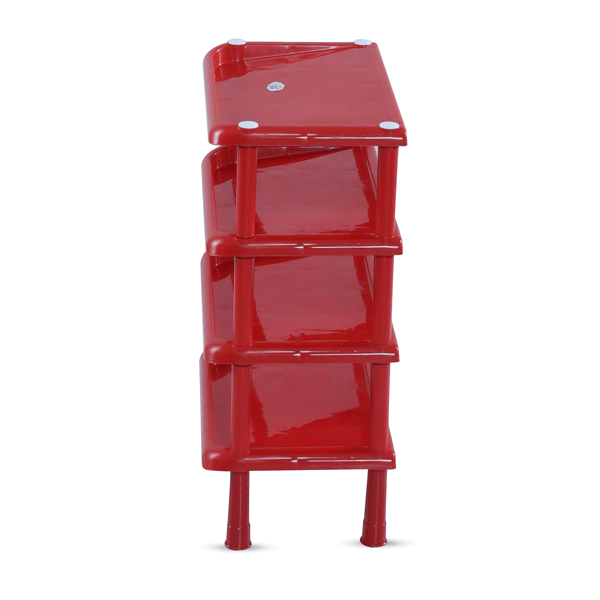 Durable 4-step polypropylene shoe rack in vibrant red color. Perfect for keeping your footwear organized and your home clutter-free.