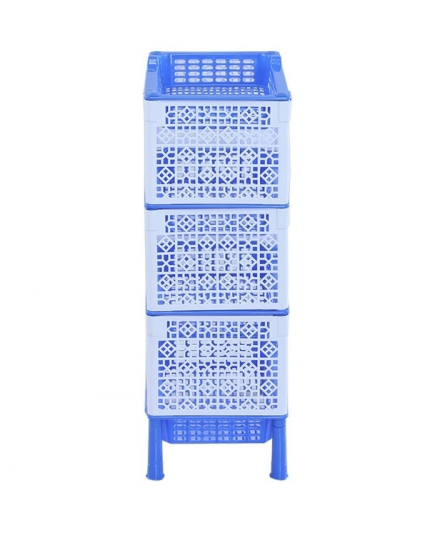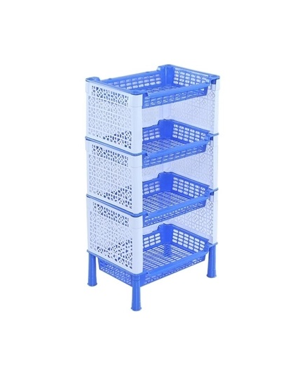 The RFL 4 Step Moushumi Rack - SM Blue & White is a durable and stylish plastic rack with 4 spacious shelves, perfect for storing clothes, shoes, books, and daily essentials at home.